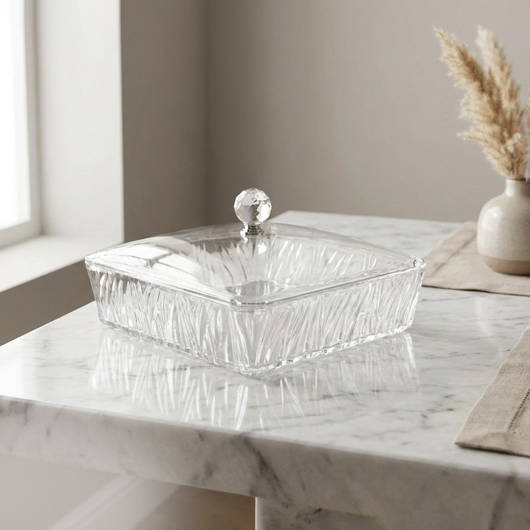 أطباق أكريليك شفافة بجودة عالية جداً، مصنوعة من أكريليك نقي، أنيقة ومثالية للضيافة بأشكال متعددة.